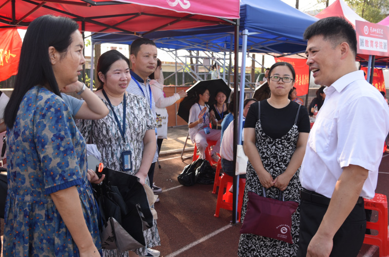 院领导与新生家长交谈