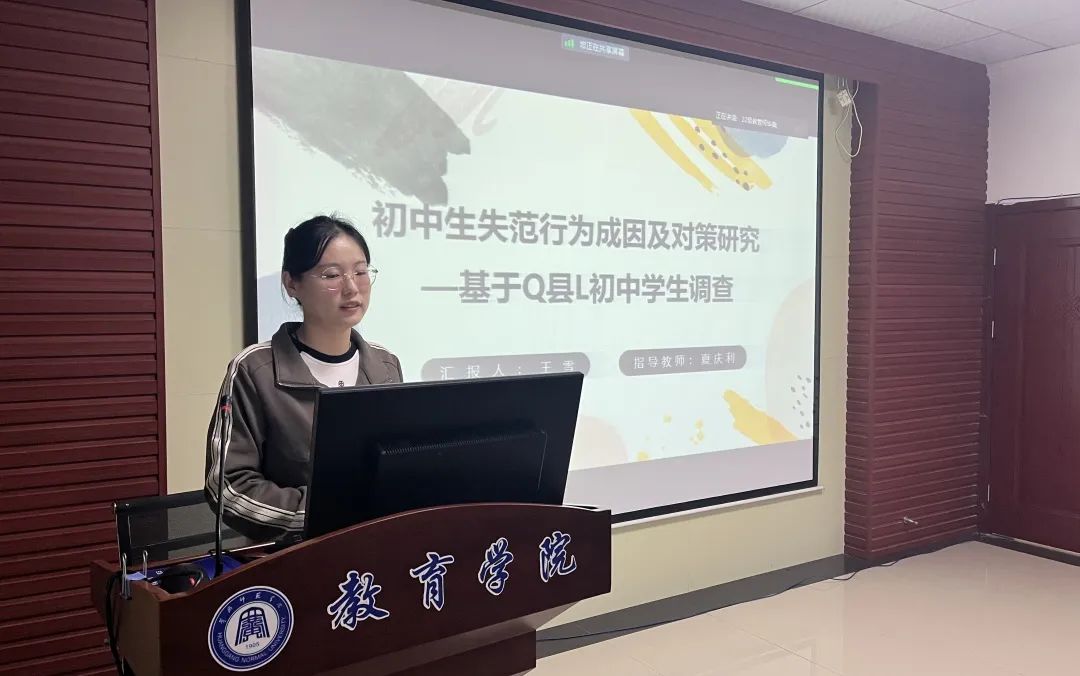 首先,由2022级教育管理专业员工蔡茜、何华美、万子琛、王雪分别就自己选定的毕业论文做了开题报告。