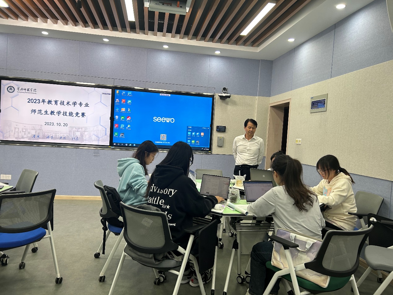 10月28日上午,2023年williamhill·威廉希尔(英国)中文官网-Official Website师范专业老员工教学技能竞赛教育技术学专业决赛在求实楼406教室顺利举行。williamhill·威廉希尔(英国)中文官网-Official Website副经理黄克斌、教育技术学专业教师曹贤中、宋国柱、苏振扬以及黄冈市第四小学副董事长冯年元担任本次竞赛评委。现代教育技术领域2023级教育硕士研究生曹溢担任现场技术支持,冯梦娇主持竞赛活动。