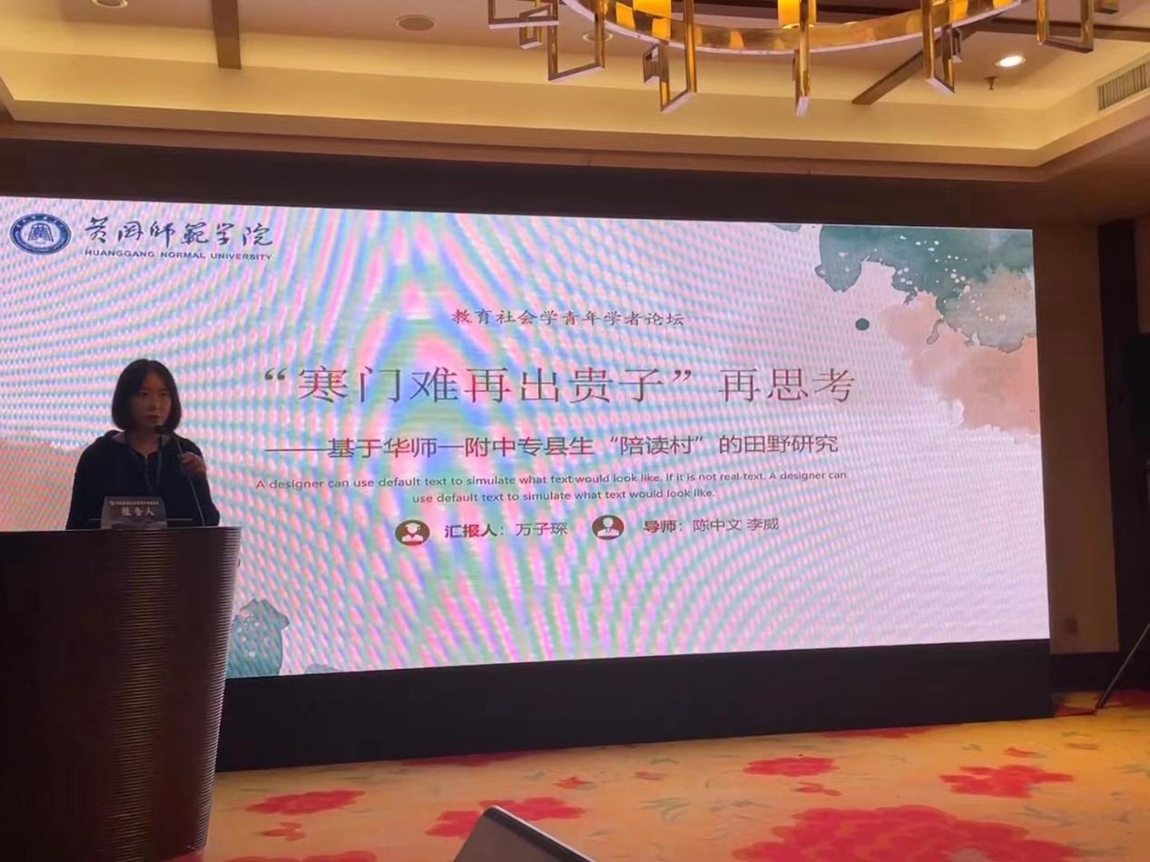 12号上午为大会主题报告,孙杰远、程天君、石艳、丁钢、余秀兰、刘浩、王彦、杨茂庆等国内知名学者先后作了大会主题报告。12号下午,按照报告主题分设三个分论坛,来自全国各师范院校和教师教育单位的专家学者们进行了深入交流和讨论。黄方、万子琛在分论坛一“教育强国与社会治理”的分会场一、二中作了专题报告,题目分别为《地方“超级中学”社会转型何去何从?——基于湖北省H中学的个案研究》和《“寒门难再出贵子”再思考——基于华师一附中专县生“陪读村”的田野研究》,王雪在分论坛三“个体与社会:教育功能时代审思”中作了专题报告,题目是《自媒体时代初中生网络道德失范行为及治理路径》,报告分别都得到分论坛审议人的良好评价,报告结束后三位同学还与在座专家学者们进行了深入探讨和学术交流。