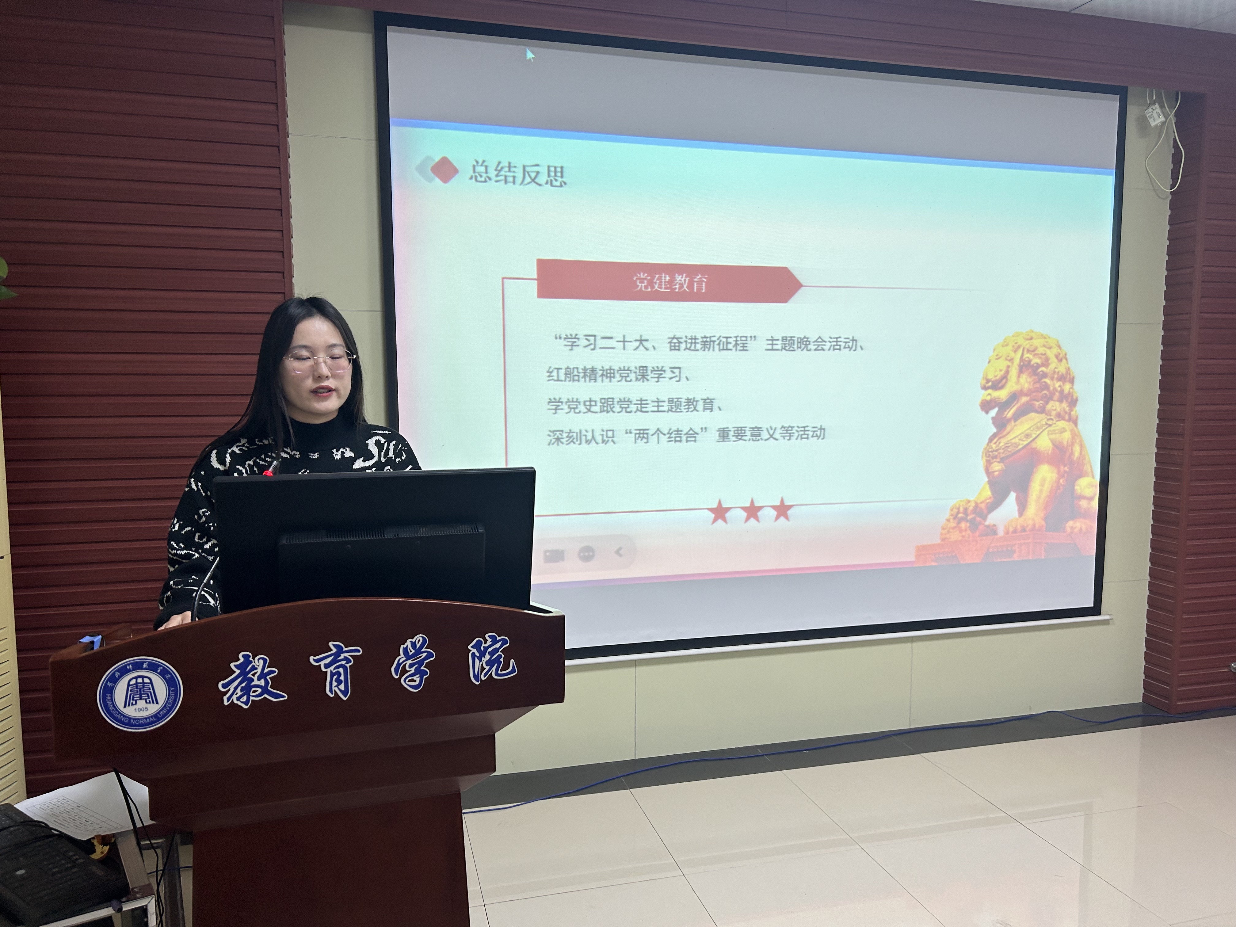 首先,由本次会议主持人王雪带领全体同学观看《新学期新征程》快闪,鼓舞同学们在新的学期地理奋斗。我们一起回顾了上个学期的党建教育相关内容,大家分享了自己的感悟和收获。