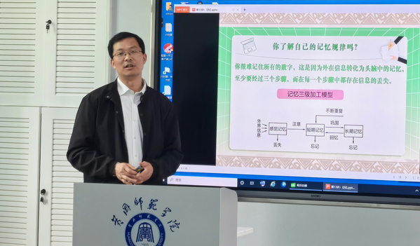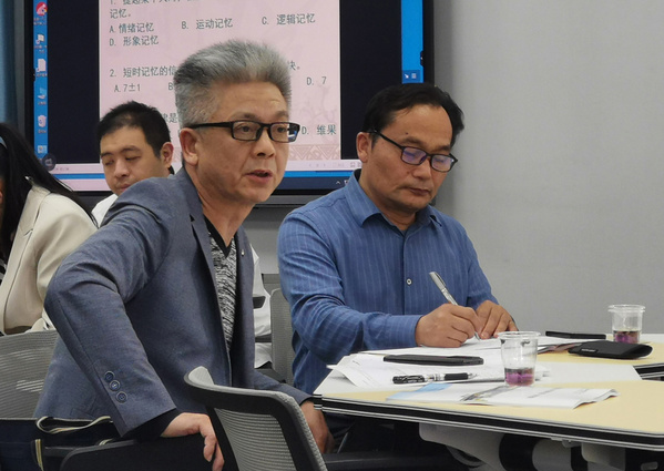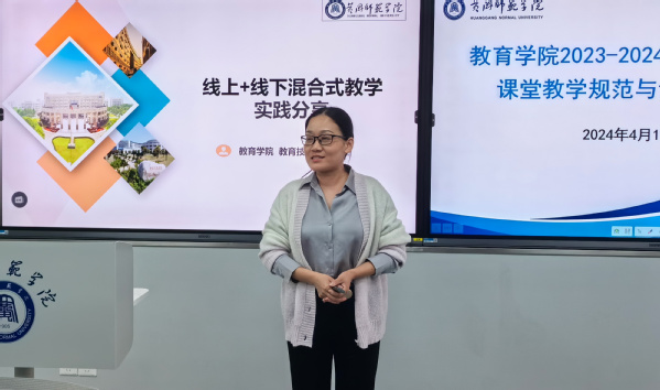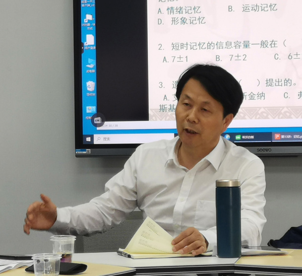 会议首先由2018年新进教师代表张翅飞博士以《中员工心理学》课程的“记忆”章节为例,讲授一堂本科课堂教学规范课实例。老教师代表、教育技术系主任马慧副教授以“线上+线下混合式教学实践分享”为例,讲授了一堂创新课堂实例。马老师结合自己课程建设的经历,分析比较了超星慕课平台、学银在线、中国大学MOOC平台混合教学情况,展示了精品资源共享课、一流线上线下混合课程、知识图谱课程和AI课程建设特点。