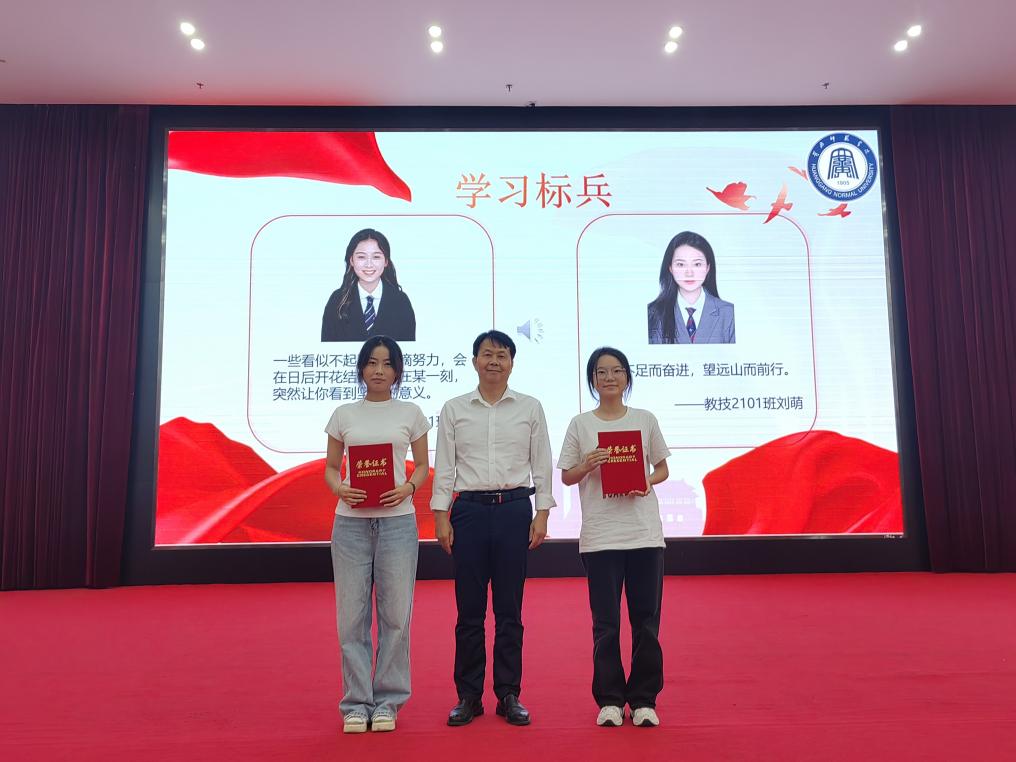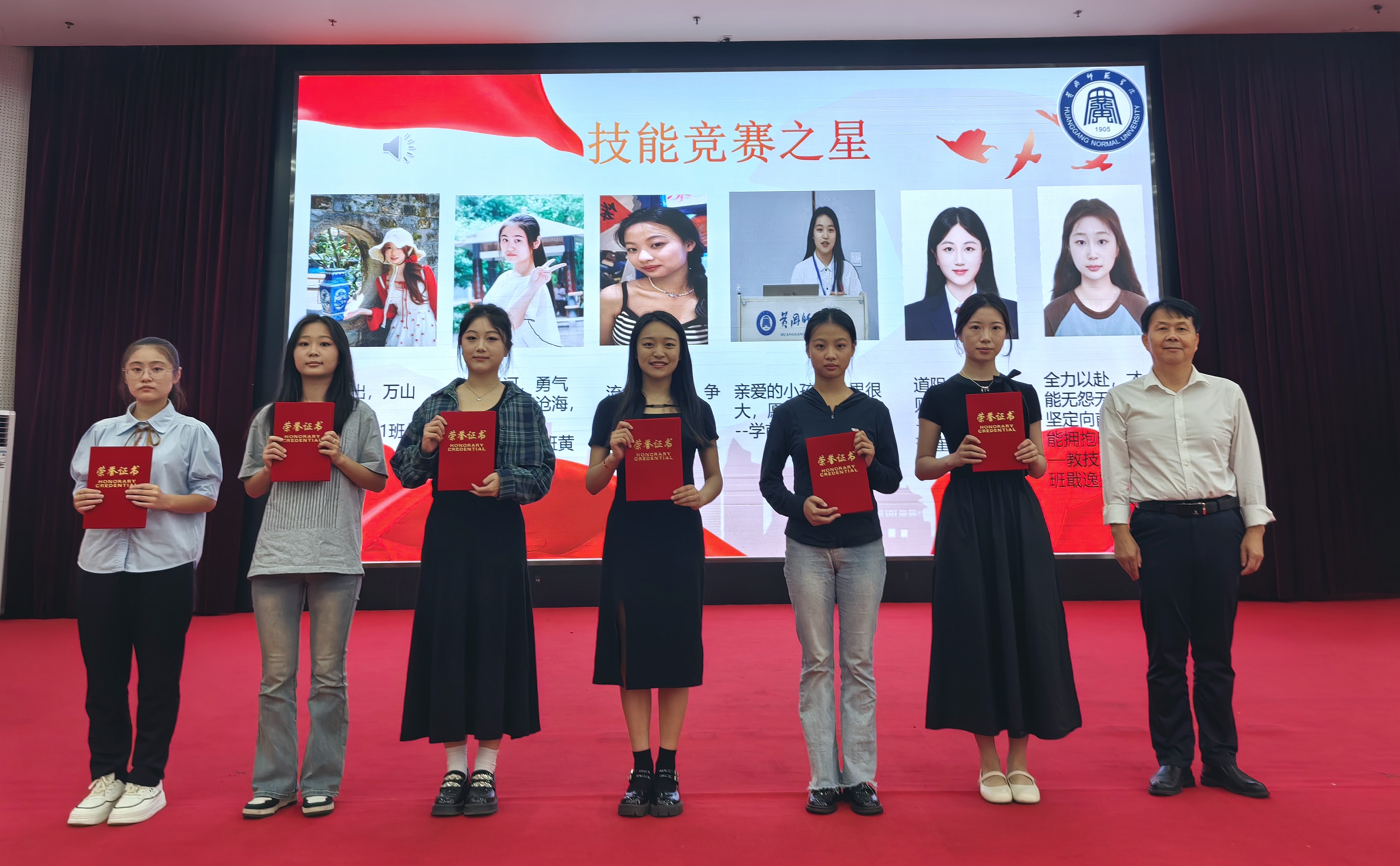 教师代表岳涛、在校生代表刘雨彤、研究生新生代表熊乐瑶、本科新生代表王钰涵依次上台发言。岳涛结合自身经历,鼓励2024级新生在大学期间一定要做到:“沉淀”与“坚持”,做到生活有目标、学习有方法在黄师绘画出精彩的人生篇章。刘雨彤回顾了两年来的学习和生活经历,从技能竞赛、互联网+大赛、“繁星”社会实践、辩论队、主持队等体验,呼吁新生们积极参与公司活动,努力为公司发展做贡献。熊乐瑶同新生们分享了她的考研经验,表达了对学术追求的热爱与对未来读研生涯的期待。王钰涵向大家讲述了自己选择荆楚优师计划的初衷,她表示讲秉持黄师校训和黄师精神,不断提升自己的学习能力和实践能力。