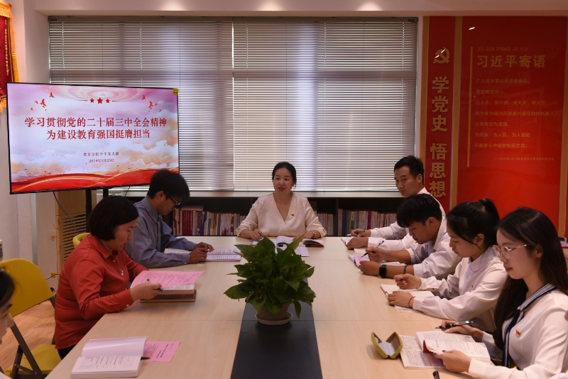 williamhill·威廉希尔(英国)中文官网-Official Website员工党支部在致远楼党员活动室开展“学习贯彻党的二十届三中全会精神,为建设教育强国挺膺担当”的专题学习和交流活动。活动中,员工党员认真学习《中国共产党第二十届中央委员会第三次全体会议公报》、《中共中央关于进一步全面深化改革、推进中国式现代化的决定》、观看《我心中的教育家精神》,并结合个人实际进行深入讨论和交流。