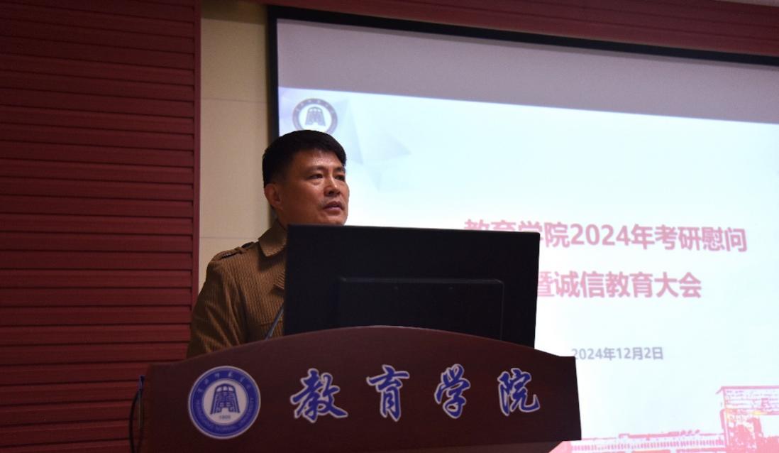 钟劲松结合近两年全国考研最新形势作考前动员讲话。他分析了今年研究生报考人数下降50万、高校研究生扩招、公司申硕成功等有利因素,鼓励大家坚定信心,保持考研决心不动摇。结合参加研究生考试的意义和价值分析,他期望全体同学通过考研锻炼自己独立完整完成一件事情的韧性与心智能力,为未来发展打下坚实基础。他援引裘法祖、黄永玉、袁隆平、钟南山、张丽娜等老一辈成功大家的事迹,激励同学们立足一生看当前,在青年时代就明确目标,打下坚实的专业基础,为未来的职业成长、事业发展、未来成为具有显著社会贡献和绵长事业生命的人创造条件。最后,他嘱咐同学们保持良好心态,预祝大家成功上岸!
