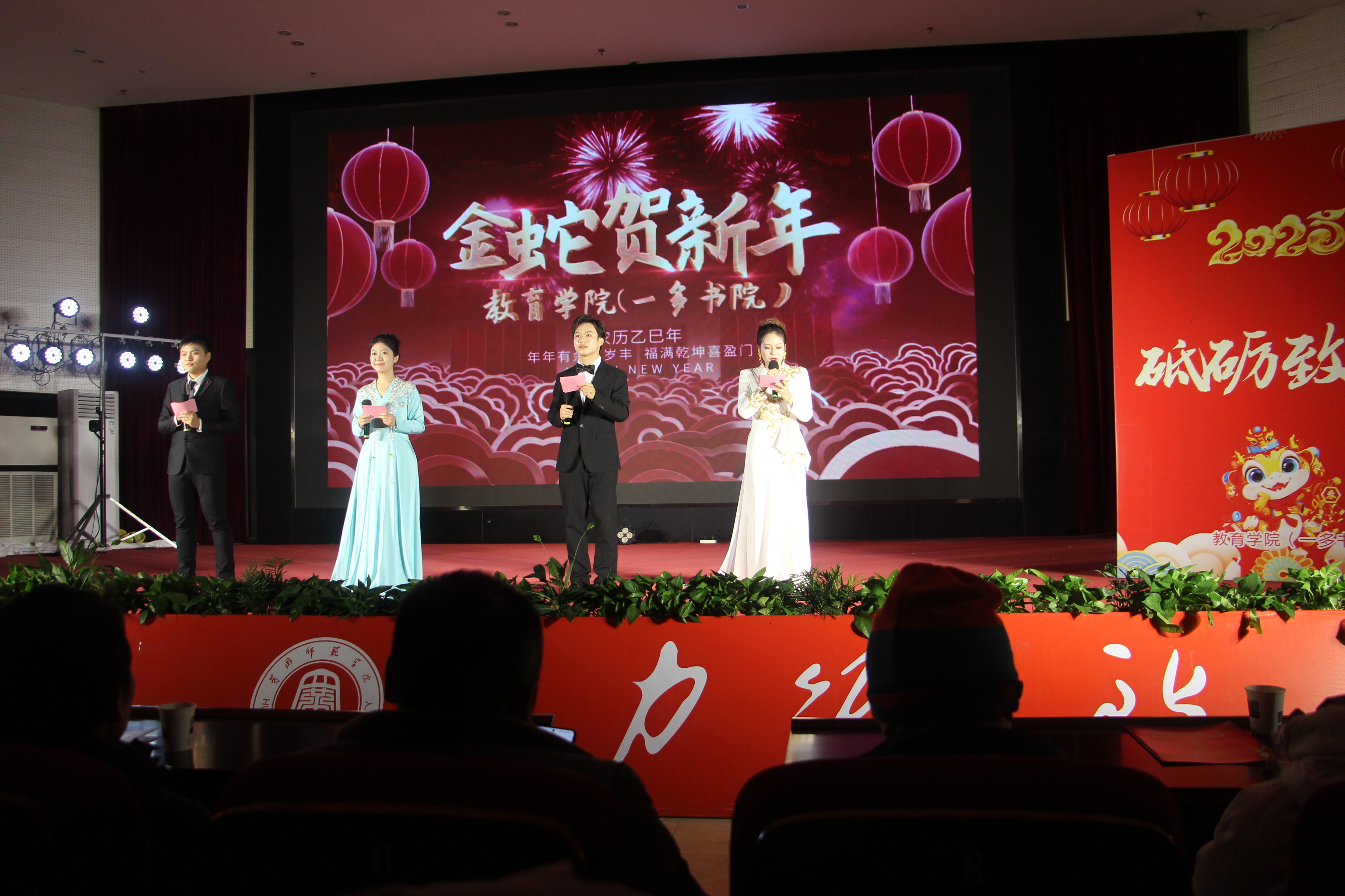 本科生们的八段锦+歌舞串烧《开工醒神操》将传统武术与现代歌舞巧妙结合,展现了员工们的多才多艺和青春活力。最后,晚会以集体大合唱《我爱你中国》圆满落幕,全体师生用歌声表达了对祖国的热爱和祝福。