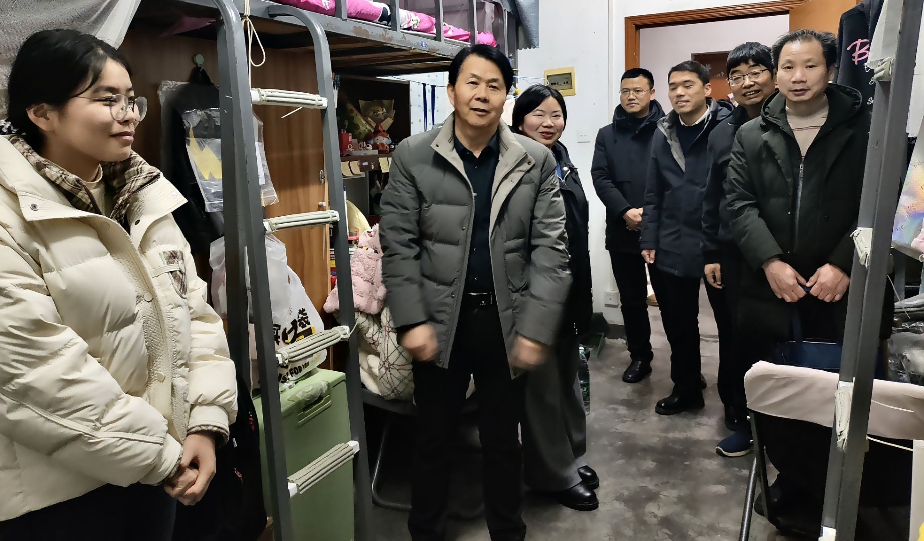 走访过程中,领导们关注低年级同学的课程学习和考试情况、毕业生考研或就业现状,此外还提醒同学们注意保持宿舍卫生、安全用电、尽快调整状态适应新学期的学习和生活。