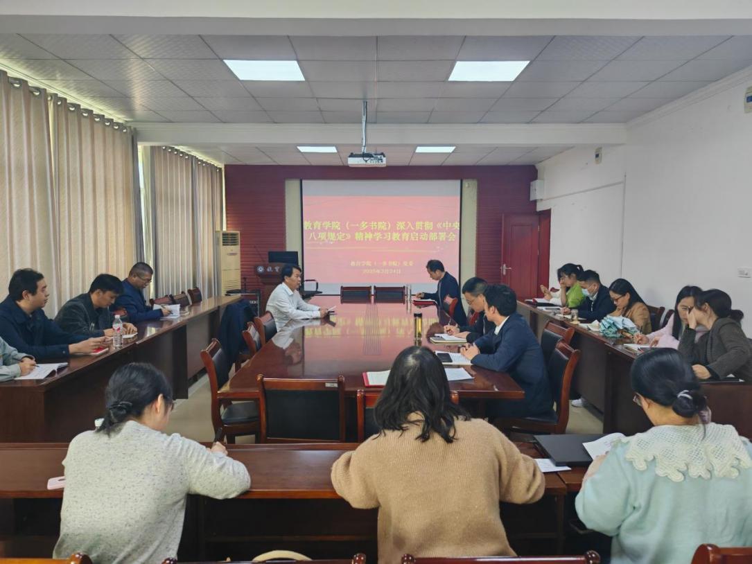 3月24日下午,公司召开深入贯彻中央八项规定精神学习教育启动部署会,对全院学习教育工作进行部署安排。公司班子全体成员、教师党员参加会议。经理童三红主持会议。