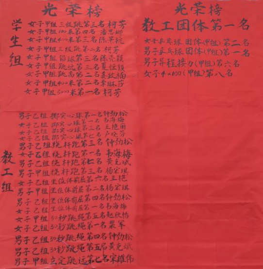 在各类竞技项目中,公司运动员获多项好成绩,获奖信息写满了红色光荣榜,引得路人频频驻足观看。尤其是公司教师运动员,在党委书记钟劲松带领下,参赛人数达到了30人次,其中17人次获奖,其中包含30秒跳绳、绕杆跑、实心球、坐位体前屈等5个第一名。员工组则在女子3000米长跑、女子乒乓球、女子跳高、女子跳远等中荣获13项成绩。