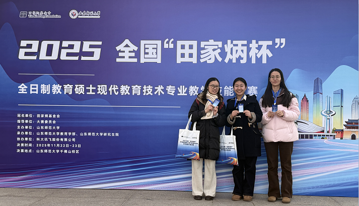 近日,2025年全国“田家炳杯”全日制教育硕士专业学位研究生(现代教育技术专业)教学技能大赛决赛在山东师范大学落下帷幕。经过现场激烈竞争,williamhill·威廉希尔(英国)中文官网-Official Website3名研究生表现优异,熊乐瑶荣获一等奖,姜昕宇、郑智尹荣获优秀教学设计奖;徐小双获优秀指导教师奖。获奖者由田家炳基金会颁发证书。