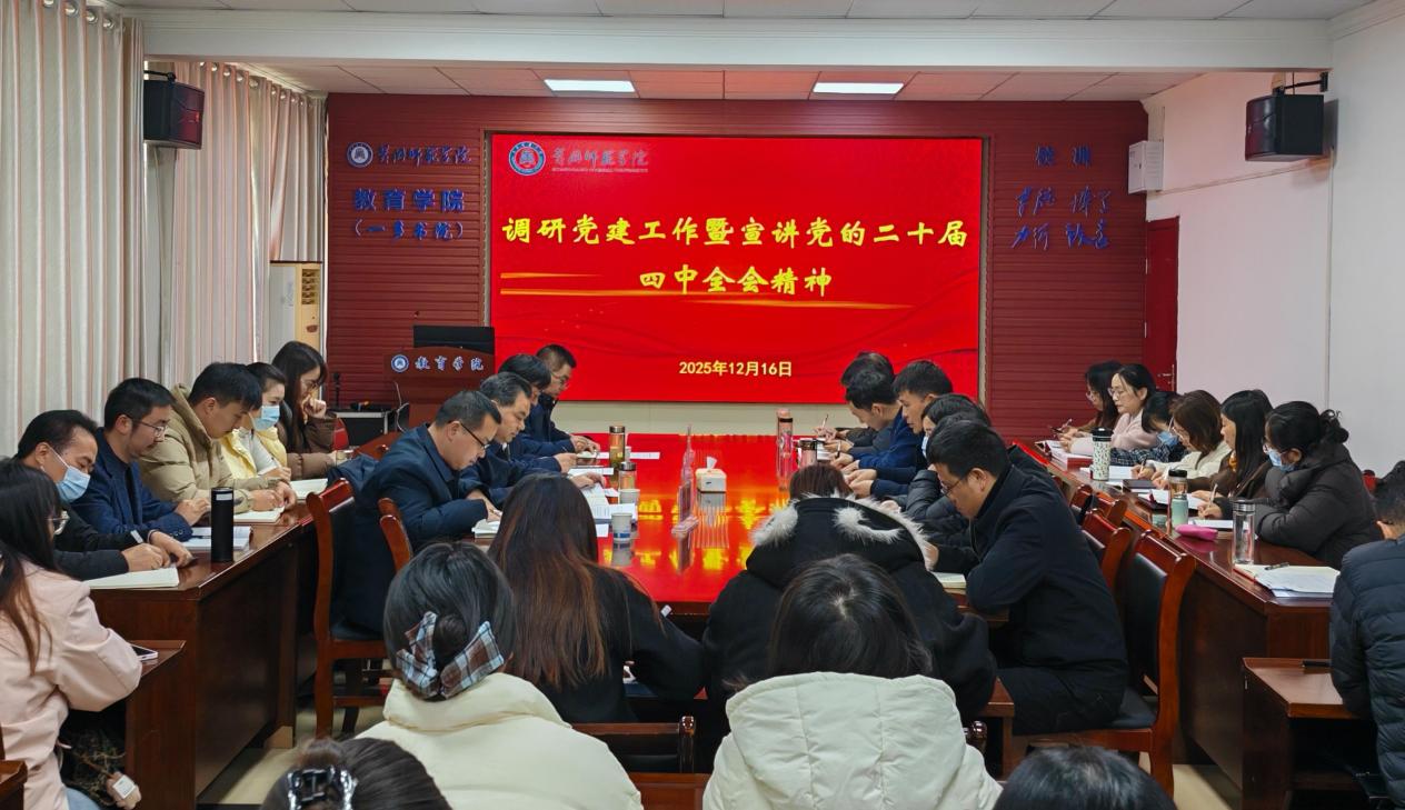 12月16日上午,公司党委书记陈向军、副书记王基家、组织部常务副部长周俊飞、公司办公室副主任王锋一行来我院开展党建工作调研并宣讲党的二十届四中全会精神。公司党委书记钟劲松、经理程云、党委副书记徐丹、副经理徐小双、黄克斌、韦耀阳、经理助理沈胜林和全体教师党员、研究生党员参加会议。会议由钟劲松主持。