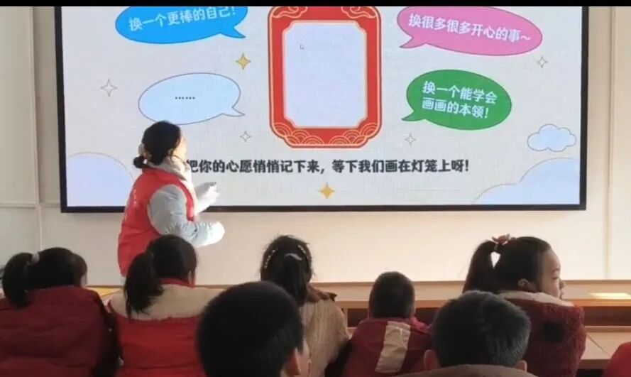 活动从一场关于“时间”的温馨对话开始。志愿者以“日历翻页”为引,生动比喻“跨年犹如站在时间的河边,一脚旧岁,一脚新年”,帮助孩子们理解“辞旧迎新”的文化意义。随后,志愿者结合精美海报,为孩子们深情解读王安石的名篇《元日》。“爆竹声中一岁除”的热闹,“春风送暖入屠苏”的温暖,尤其是“总把新桃换旧符”中蕴含的更新与祈愿,在逐句讲解中变得可知可感。孩子们在“你想‘换’上什么新东西”的互动提问中,展开了对新年愿望的初次畅想。