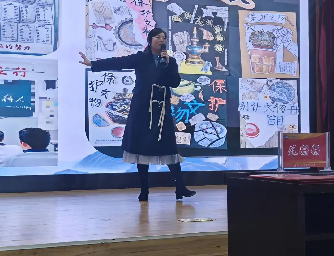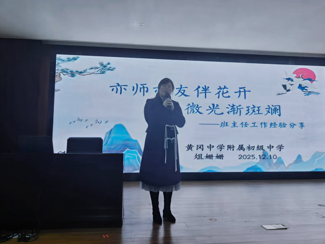 俎姗姗老师以“亦师亦友伴花开,一束微光渐斑斓”为主题,借PPT展开分享。她先提出班主任需备“责任心、宽容心、公平心、爱心、细心”的“五心法宝”,又引陶行知名言,强调要站在员工立场共情。