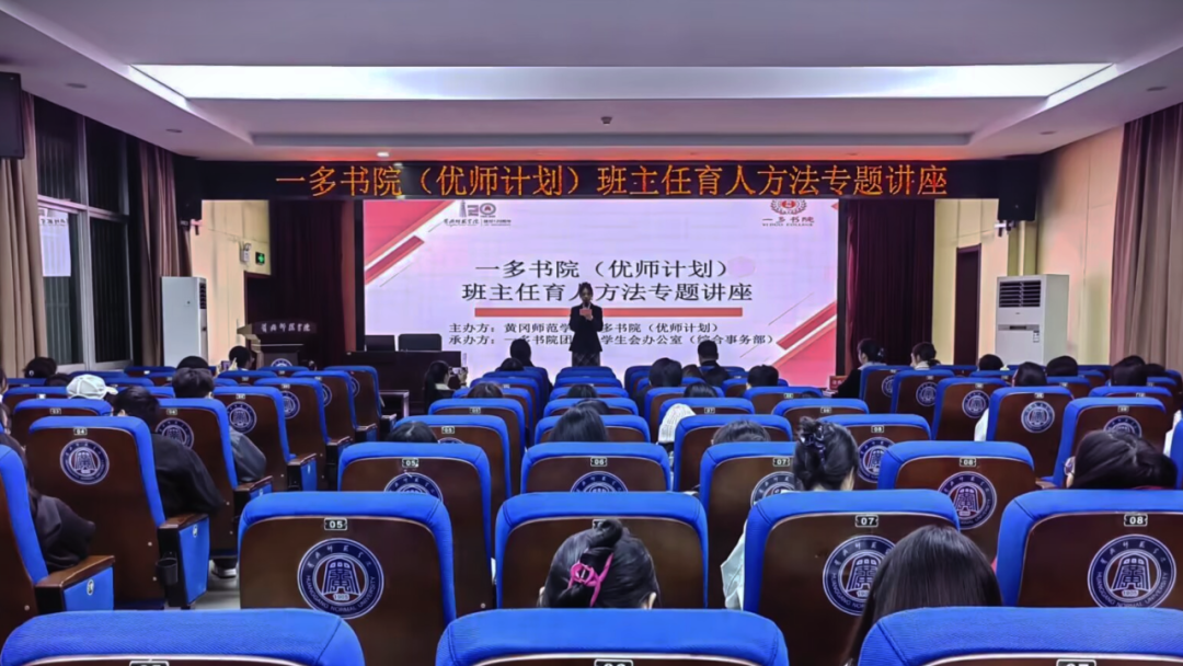 本次活动由书院主持队队员刘雨荷主持,特邀黄冈中学附属初级中学年级主任俎姗姗主讲,一多书院经理助理沈胜林、团委书记胡涵伊、辅导员曹钰涓及2023级“优师计划”全体员工参与。开场环节,主持人逐一介绍出席的领导、老师与主讲嘉宾,点明讲座旨在帮助优师生掌握班主任育人实践方法,为未来从教积累一线经验,现场迅速凝聚起专注的学习氛围。