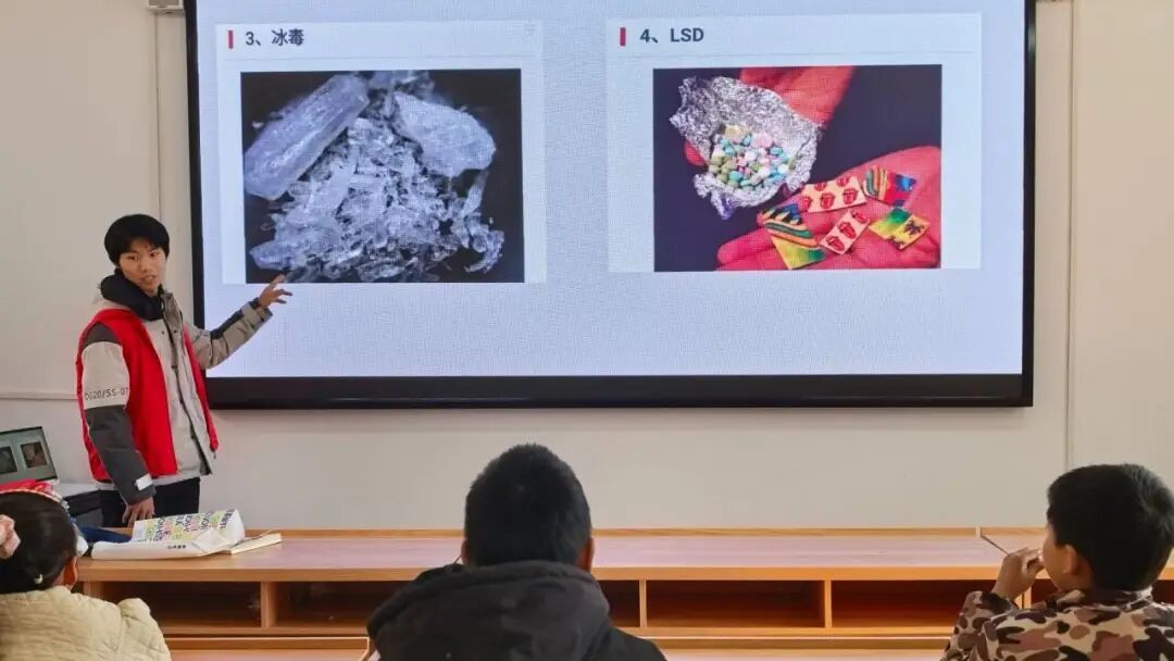 活动伊始,志愿者们以真实案例改编的视频《“糖丸”毁掉的花季》拉开序幕,志愿者结合视频抛出问题引导思考,着重强调“毒品会‘穿衣服’,可能藏在零食、饮料甚至药品里”的危险事实。与此同时,志愿者们还教孩子们牢记“三不原则”——不碰陌生物品、不进危险场所、不交涉毒朋友,在趣味互动中打破“毒品离我很远”的认知误区。