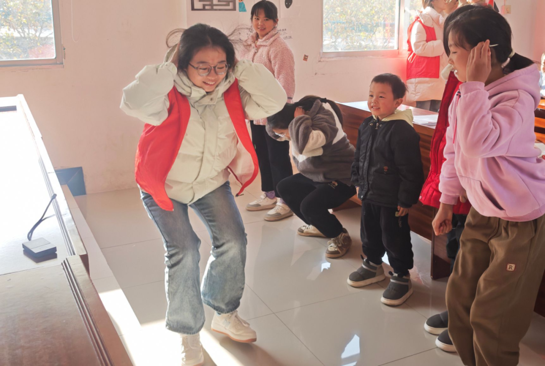最热闹的当属“听音传花”:扭扭花在小手间“飞”来“飞”去,音乐一停,拿到花的孩子就现场秀一段“自创体操”——有人学小兔子蹦跳,有人模仿小鸭子摆臂,连志愿者都被拉着加入了“搞怪动作大比拼”,笑声差点掀翻教室顶!
