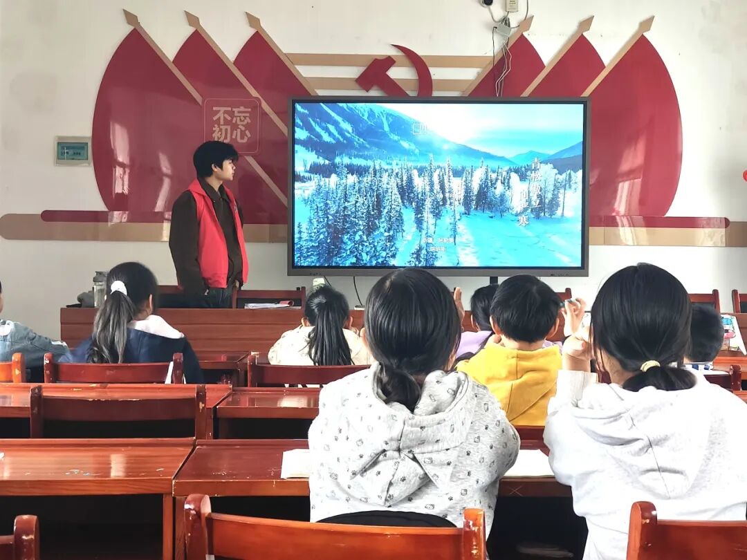 技巧讲解结束后,最令人期待的歌曲教习正式拉开帷幕。志愿者们先播放了一遍《立冬》的歌曲音频,舒缓的旋律、贴合冬日意境的歌词,瞬间吸引了孩子们的注意力。“北风起,叶飘零,立冬悄然而至;炉火暖,情谊浓,岁月温柔以待……”志愿者们逐句领唱,耐心纠正孩子们的音准和节奏,遇到难唱的乐句,便放慢速度反复教习。孩子们兴致勃勃,跟着旋律放声歌唱,清澈的童声交织在一起,温暖了整个冬日的课堂。有的孩子虽然声音不大,但眼神坚定,跟着节奏认真哼唱;有的孩子则大胆展示,歌声响亮又动听,感染着在场的每一位志愿者。