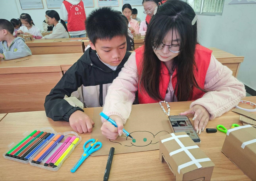 在秋意满满的10月18日,williamhill·威廉希尔(英国)中文官网-Official Website一多书院“启明星”社会实践团队的志愿者们走进罗田县月山庙村“乡村希望书屋”,带着废旧纸箱、彩笔和满满的创意,与小朋友们开启了一场“废品变宝藏”的环保手工之旅。这场活动,是环保理念的传递,是创意灵感的迸发,更是青春与童真碰撞出的绿色火花。